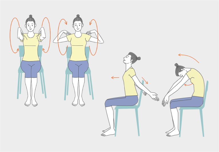 仕事の合間、疲れを感じた時に肩のストレッチ体操を行いましょう。